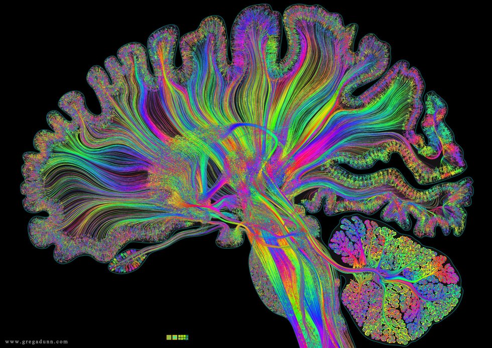 The disease starts with the eyes. The light hits the retinas, whose cells compile an image based on the light, firing chemical and electrical activity down their axons, through the optic tracts to the visual cortex in the back of the brain. From here, this cascade of neural signaling fans out over the top and bottom portions of the brain, propagating the original signal, sending this disease-ridden image throughout the brain like a virus.