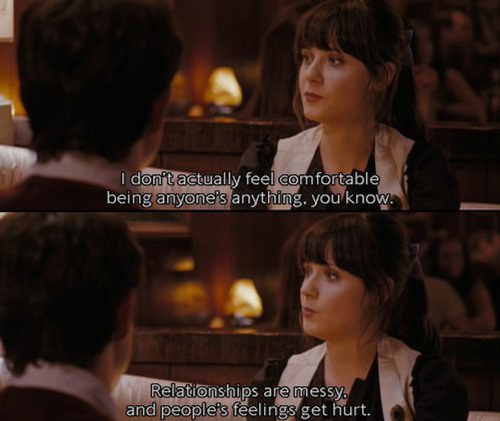 The actor who plays Tom, Joseph Gordon-Levitt, describes the problems with this when he says, “He (Tom) develops a mildly delusional obsession over a girl onto whom he projects all these fantasies. He thinks she’ll give his life meaning because he doesn’t care about much else going on in his life. A lot of boys and girls think their lives will have meaning if they find a partner who wants nothing else in life but them. That’s not healthy. That’s falling in love with the idea of a person, not the actual person.”