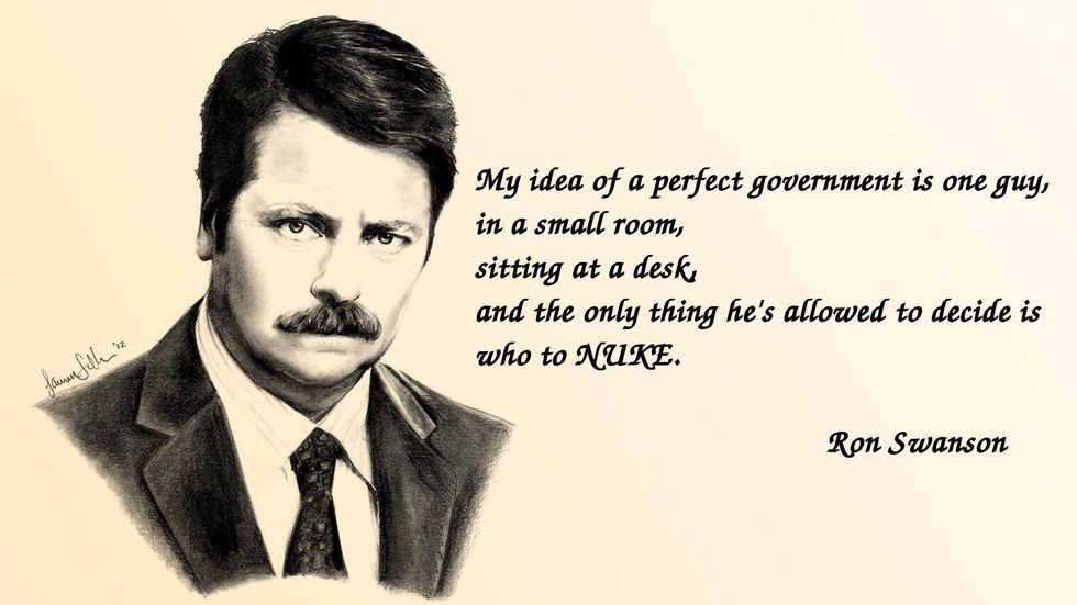 July 4th: the day where more patriotism is shown in the United States than any other day of the year. Being an American can mean very different things depending on who you ask, but there is one person in particular who takes an entertaining approach to showing his patriotism. Ron Swanson, of NBC's Parks and Recreation, embodies the stereotypical American lifestyle in an entertaining way. In honor of Independence Day, let's all take a look at what Ron Swanson thinks about America and what it means to be an American.