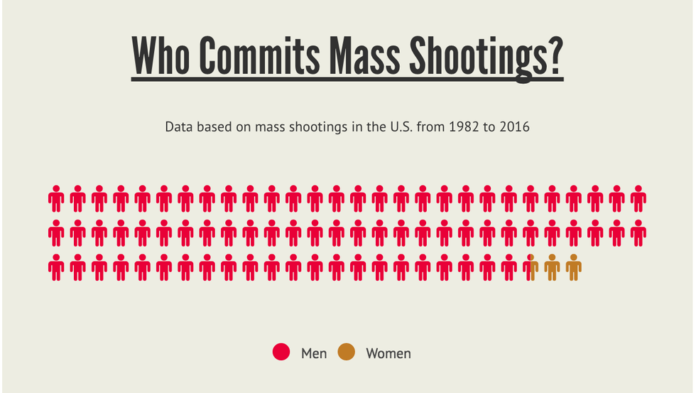 Today, liberal newscasts and comedy shows are freely discussing this issue with great fervor on a regular basis – quite beautifully, if I do say so myself (shout out to the Daily Show and my man Trevor Noah), but people still seem to be ignoring one of the blatantly obvious trends that are contributing to this persistent gun violence. An overwhelming number of mass shooters have been men. Why has this not become a theme in the conversation about gun violence? Don’t worry, this is not about to turn into a man-bashing piece, but since we’re finally being honest about the gun issue in America, shouldn’t we be acknowledging every piece of the equation?