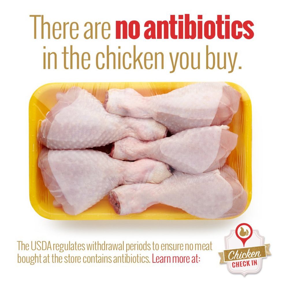 Remember the above statement? Farmers care about their animals. When their livestock gets sick, they give them medicine, just like you would give to your child if he/she were sick. Before an animal can go to harvest, the antibiotic must be completely out of its system. If a cut of meat tests positive for antibiotics, it cannot be sold.