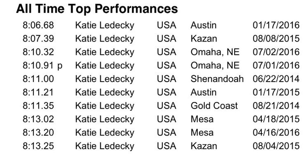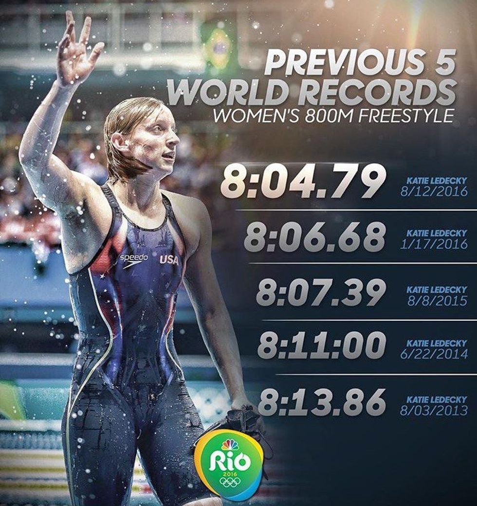 For those of you who do not know her, Katie Ledecky is a U.S. freestyle swimmer who has never lost a major international race. She was pegged as a long distance swimmer last Olympics in London when she won the 800 freestyle as a 15 year-old. Then, she surprised us by winning the 200 and 400 freestyle in Rio.
