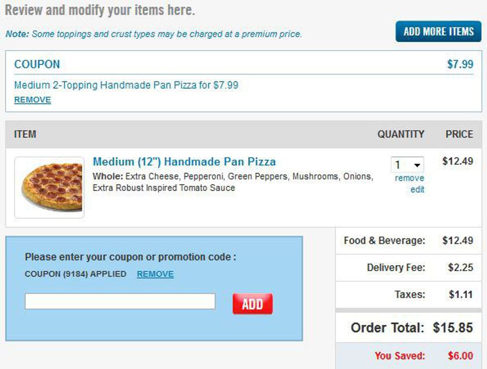 If there is no required minimum amount due for your order to be delivered, the restaurant will likely issue a small delivery charge. This cannot be stressed enough -- a delivery charge does not go to the driver! This amount goes to the store and is billed with the food, as shown in the example above.