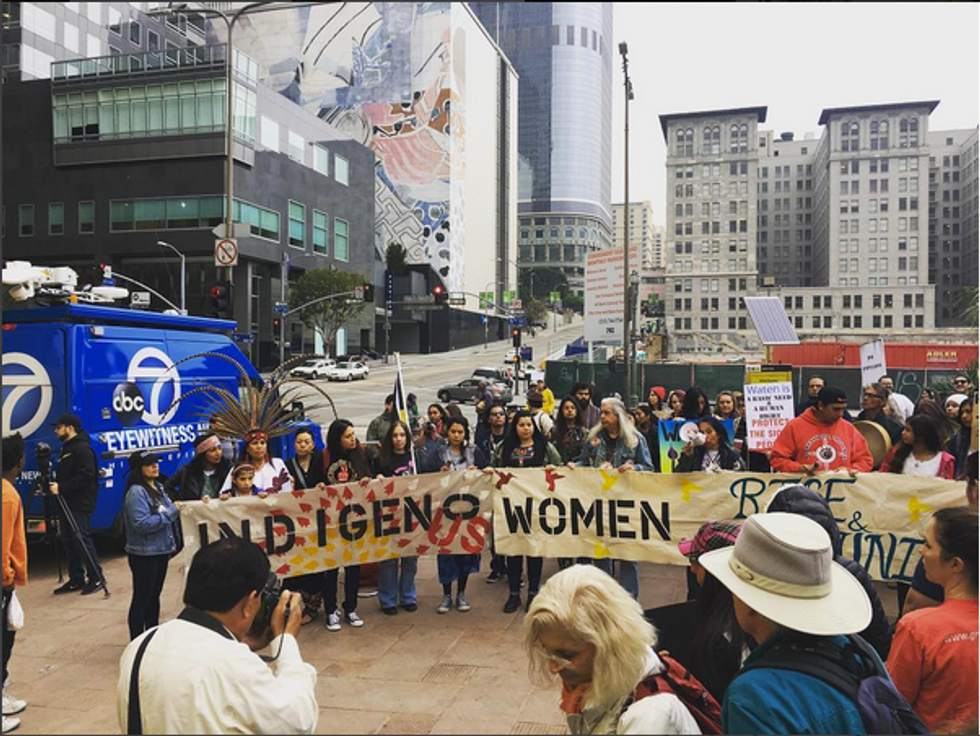 With the pipeline in North Dakota desecrating sacred land belonging to the Lakota and Dakota tribes at Standing Rock, it's appropriate that this movement is being led by members of the local Tongva and Chumash tribes. They began the day's processions by performing traditional songs and dances while lighting up incense as part of their rituals. It was all very atmospheric and prepared us for a very spirited march down the city roads.