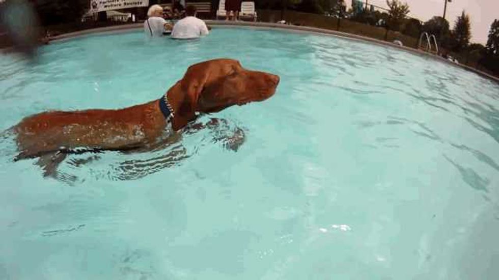 Dogs that swim are probably the cutest thing. Look at this cute little guy. Part cuteness, part dog, part fish.