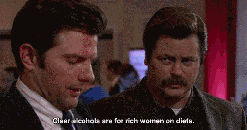 The vodka water drinker does not have time for any additional calories. Yea, maybe her drink tastes like watered down rubbing alcohol but she's probably skinnier than you and also has a little bottle of Mio in her purse, just in case.