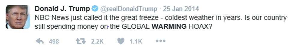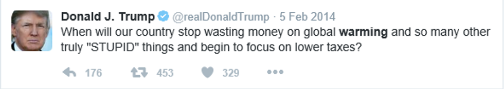 It is no secret that Donald J. Trump has been a skeptic of climate change for several years. In an interview Donald Trump gave to Fox news in 2014, he called climate change a hoax. His twitter feed also expresses his disdain for the concept: