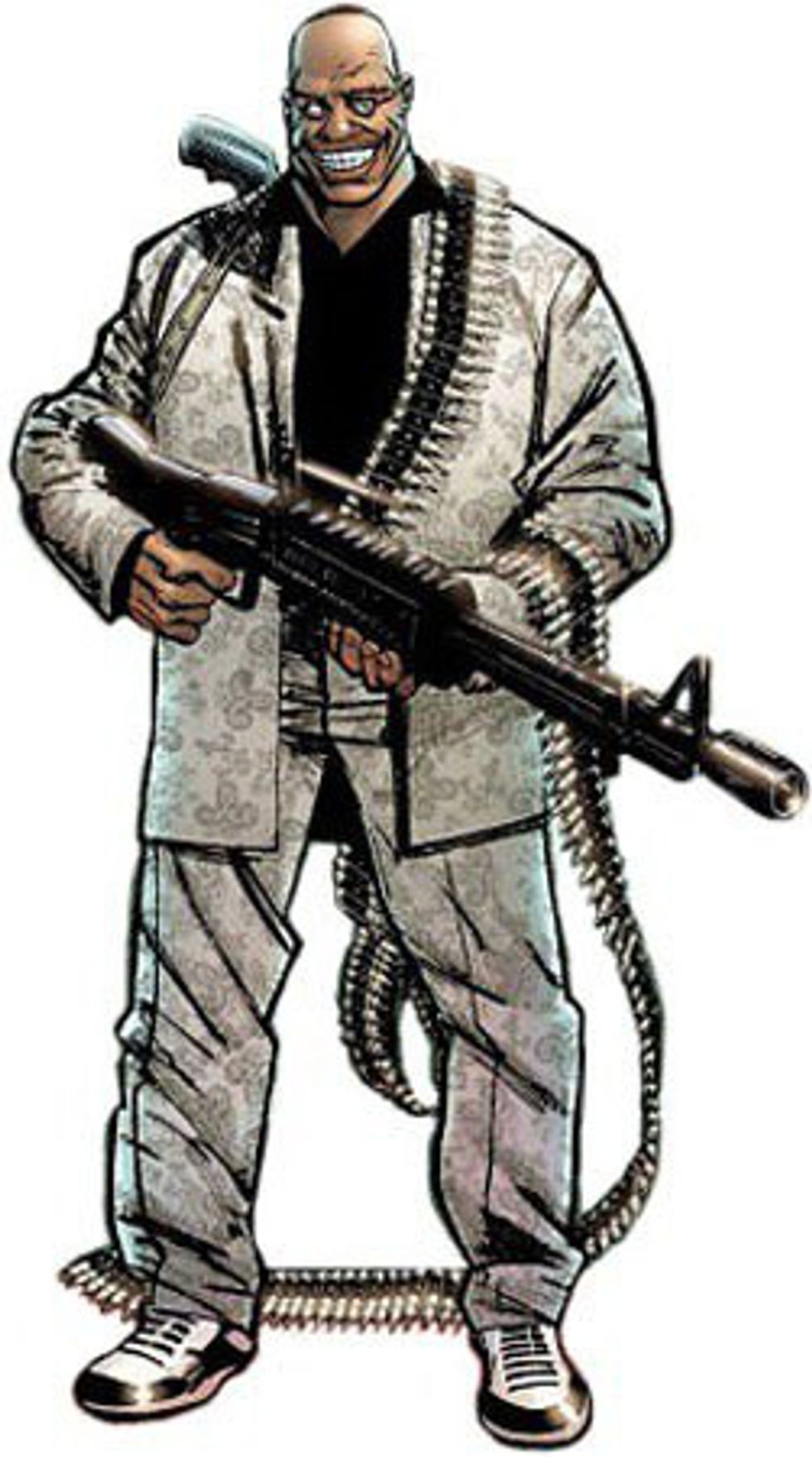 Bushwacker was a former CIA operative who was given a cybernetic arm as a prosthetic, which had the capabilities of a variety of ballistic weapons and even a flamethrower. He appeared in the 2005 video game "The Punisher" where he was employed by the Gnucci family. If he were used in this series, he should have a much larger role than a mere mercenary and freedom to show how much ass he can kick.