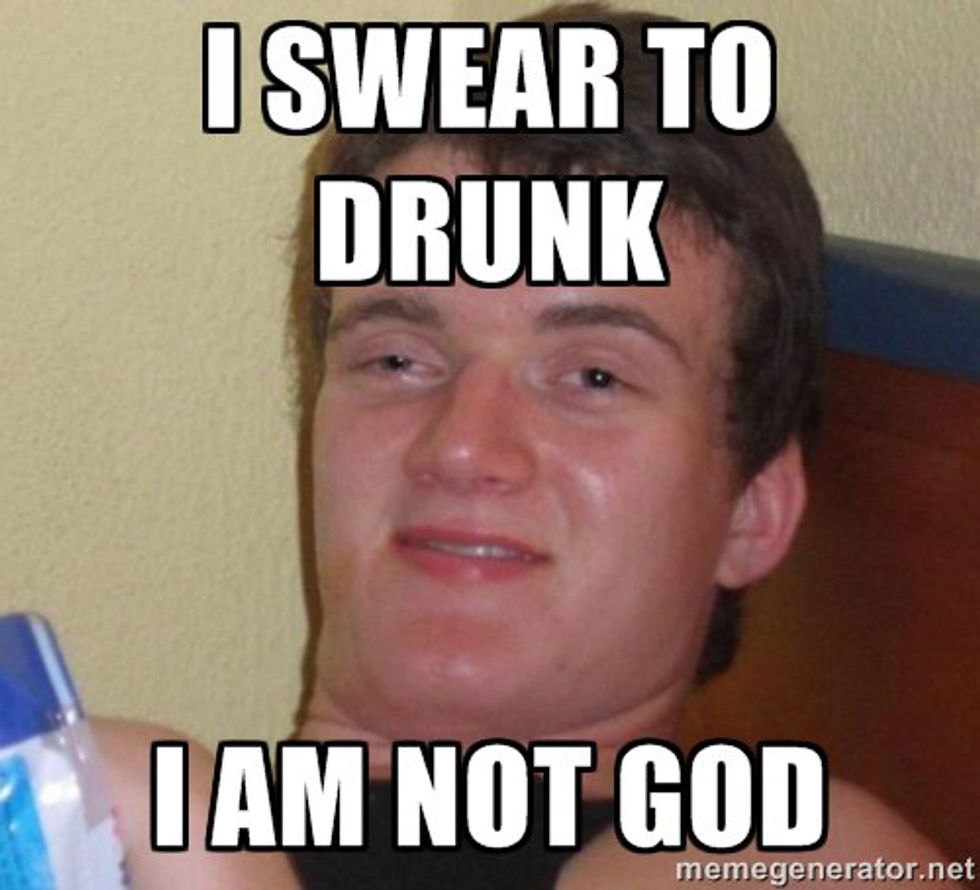 Here's the conversation: "I'm not drunk." "Yes, you are." "$#@* you! I'm not!" "Yes, you are! Now, stop drinking!" "@$$-hole! I said I'm not."