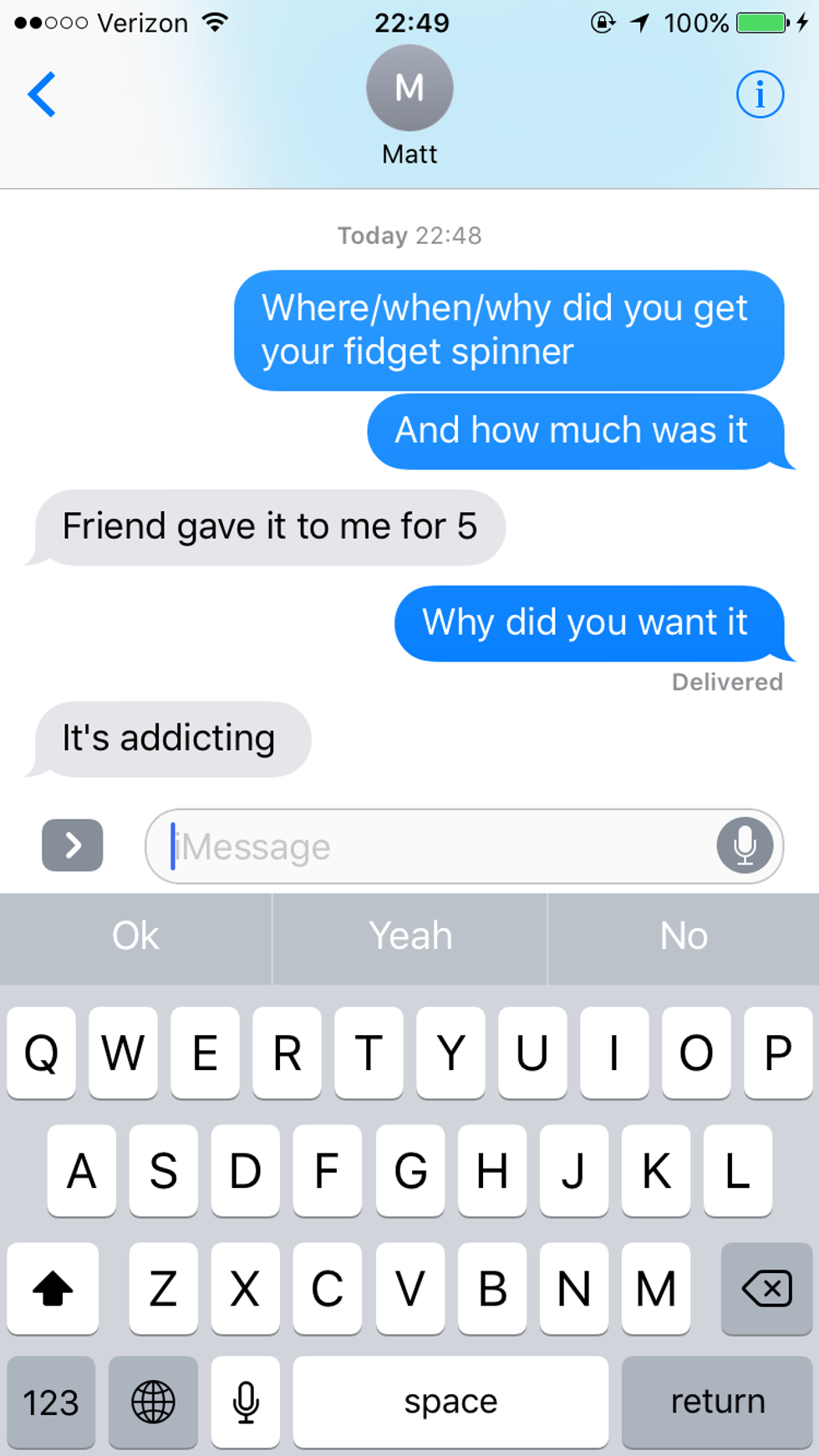 I heard about fidget spinners maybe a few months ago, but I didn't think much about them or care to do any research. Two weeks ago, Vice posted an article on their Snapchat Discover page (ugh, please judge me for reading Discover pages) about the manufacturers of these toys. Since then, I've seen tons of tweets making fun of the objects.