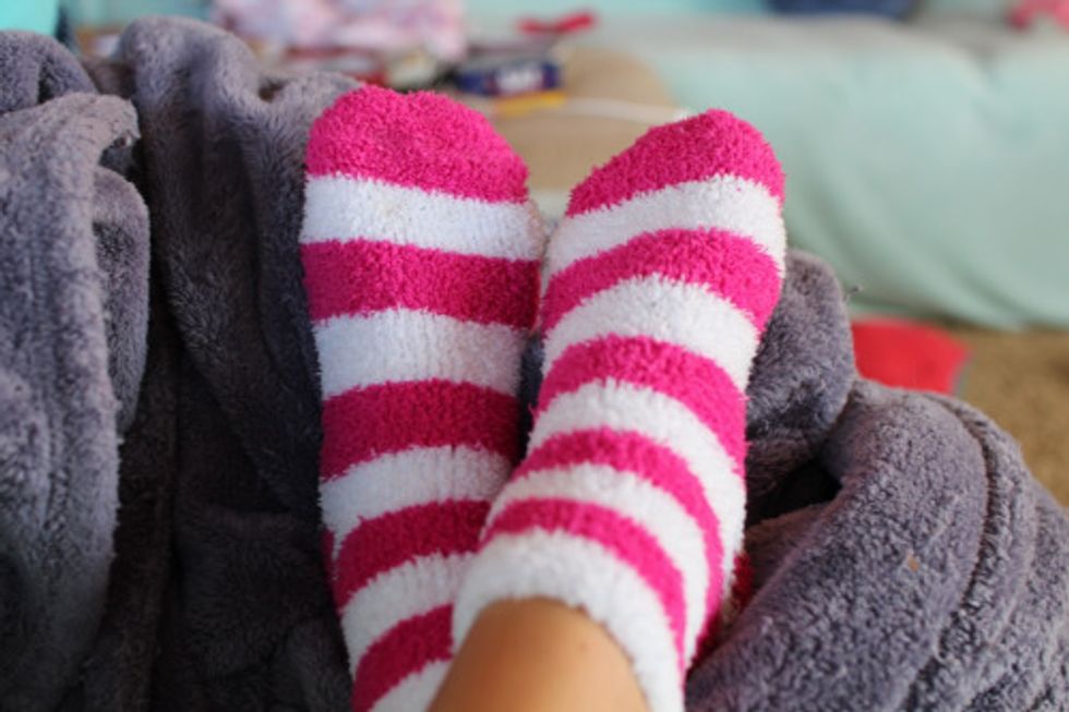 Odds are you will probably be walking around the dorm a lot whether it is to get a soda from the vending machine, go to your friends room, or hang out in the multipurpose room and fuzzy socks are the answer to dirty dorm floors and not wanting to put on shoes. The blanket can be used for spontaneous movie nights with your friends.
