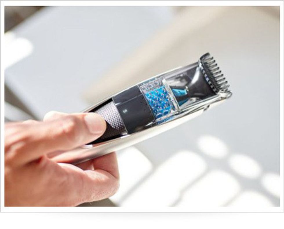 If your man is into his growing his beard, this is a must have tool. The Philips Norelco 7300 is a trimmer with 18 length settings, a handy LED display, a safety lock for traveling. It even has a built in vacuum, so no hair residue will be left in your sink.