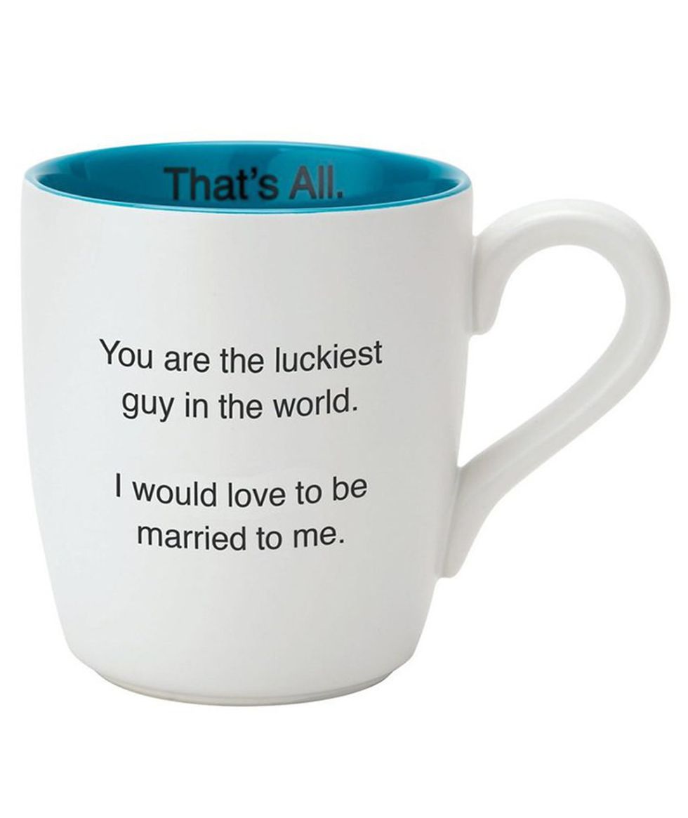 Hey there's nothing wrong with reminding him how perfect you two are together, maybe even dropping some hints. Regardless this cool fun mug is a great playful gift for your coffee-drinking guy. Hopefully he has a good humor. $15 at nordstrom.com