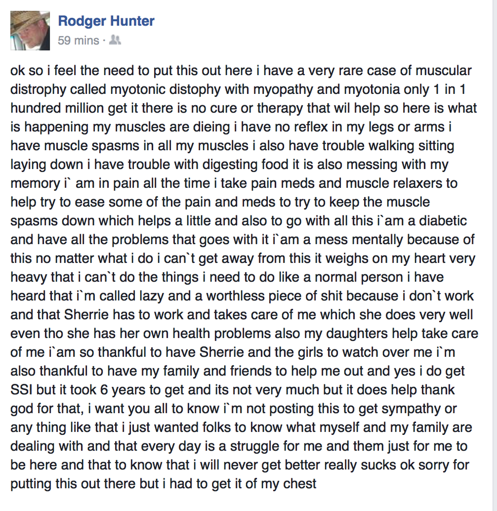 So to get back to my father, he is the main reason I’m writing this because he posted something on Facebook telling everyone, his health problems. So seven or eight years ago my parents told us that my father had an incurable disease and he was dying.