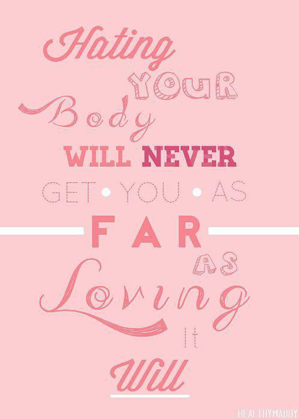 I hope you don't start your new year with some ridiculous diet where you only eat grapefruit for 14 days. I hope you realize how strong and capable your body is. I hope you look at your legs and remember all the wonderful things they allow you to do like run and jump and dance. I hope you never look in the mirror and cry because you don't like what you see. I hope you take care of yourself and be healthy because it makes you feel good. I hope you enjoy going out for ice cream with your friends without obsessing over every calorie. I hope you realize that your body is not the enemy.
