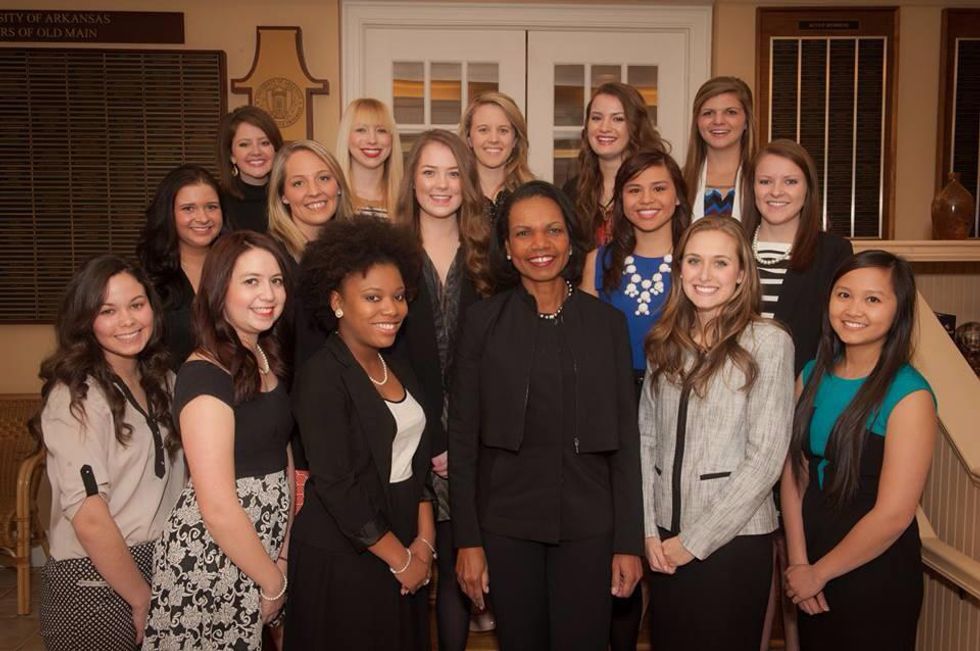 -Condoleezza Rice, the first black woman to be a National Security Adviser and also the first black woman to be the U.S. Secretary of State, was an Alpha Chi Omega.