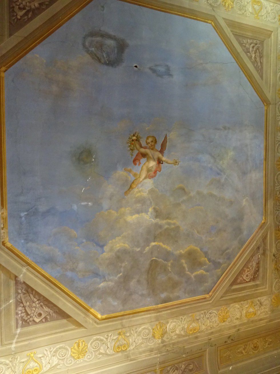 This is a picture of a fresco on my classroom's ceiling. We learned that our school used to be the building where the animals that the gladiators were going to fight were kept. Also, outside is one of the oldest arches from a building of the Roman empire. All that history just in my school, and as I walked by the town, I saw signs that explained what buildings were back in the day. Literally a church was a granary before it was a church. The Airbnb my mom and grandmother rented when they visited me was a monastery years back! I particularly really enjoyed learning about the history of buildings and stores because of how much things evolve through time, and how a church might've become a modern bar.