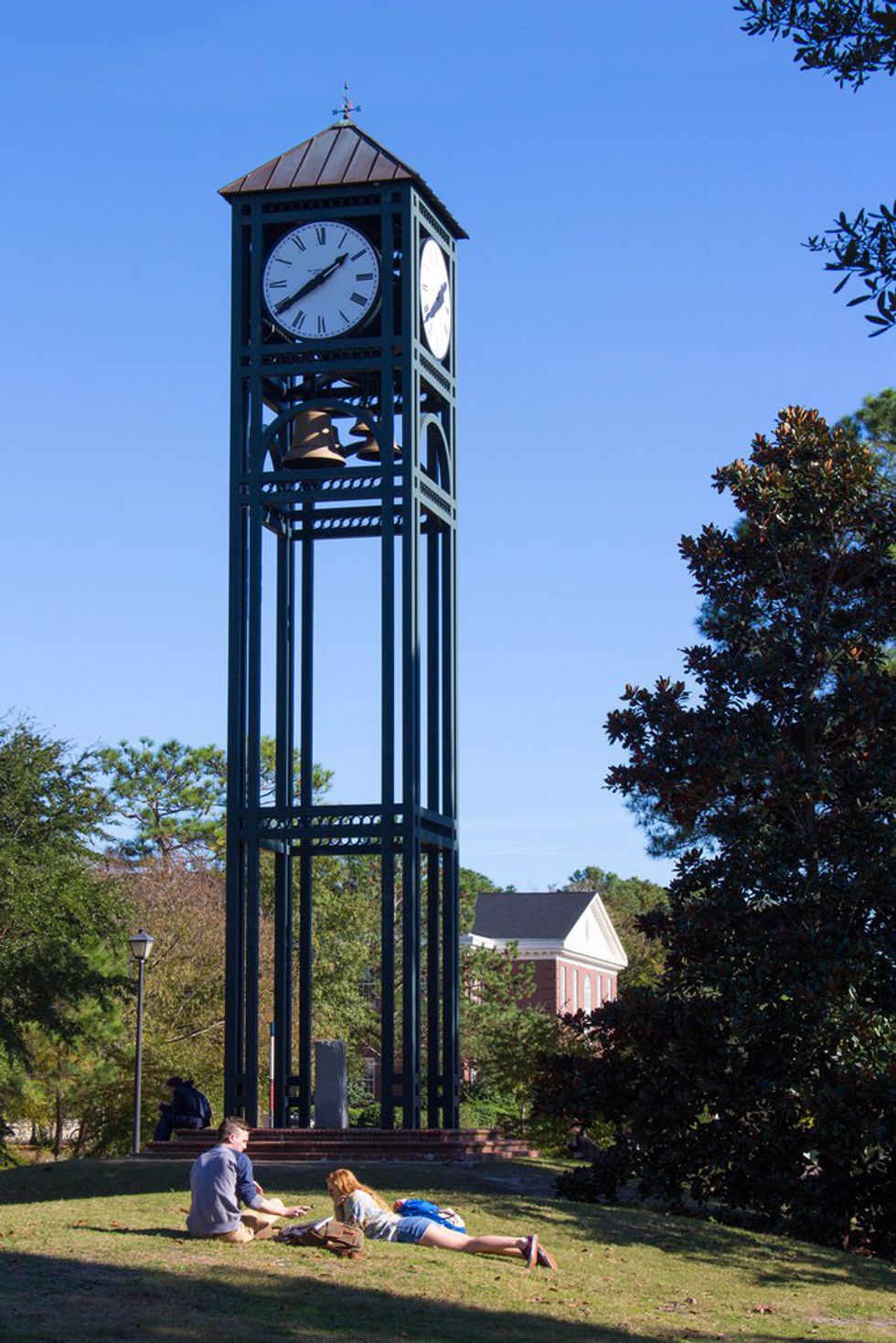 Have I mentioned how photogenic UNCW is? I love the clock tower and its cheerful song playing at noon and it's hourly reminders. It's a good spot for last minute studying right before class or people watching or just simply talking with friends.