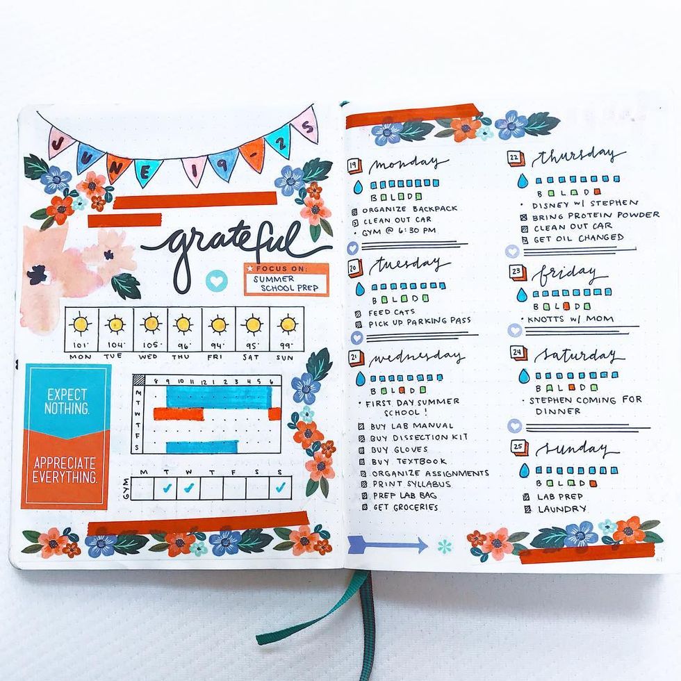 The greatest part about bullet journaling is that there is no right or wrong way to do it. Nobody can tell you your spread is wrong. It really allows for full creativity, and for me, that's especially helpful because I'm always trying to fit a certain mold. By letting myself be creative, I'm fighting that need to conform to examples and it's a really good feeling.