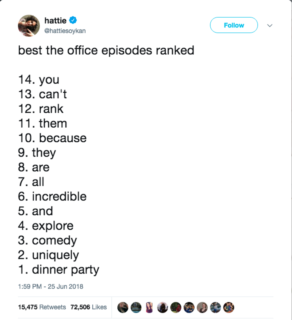 Recently, I came across this Twitter post in a Buzzfeed article about a new ranking meme circulating the Internet.