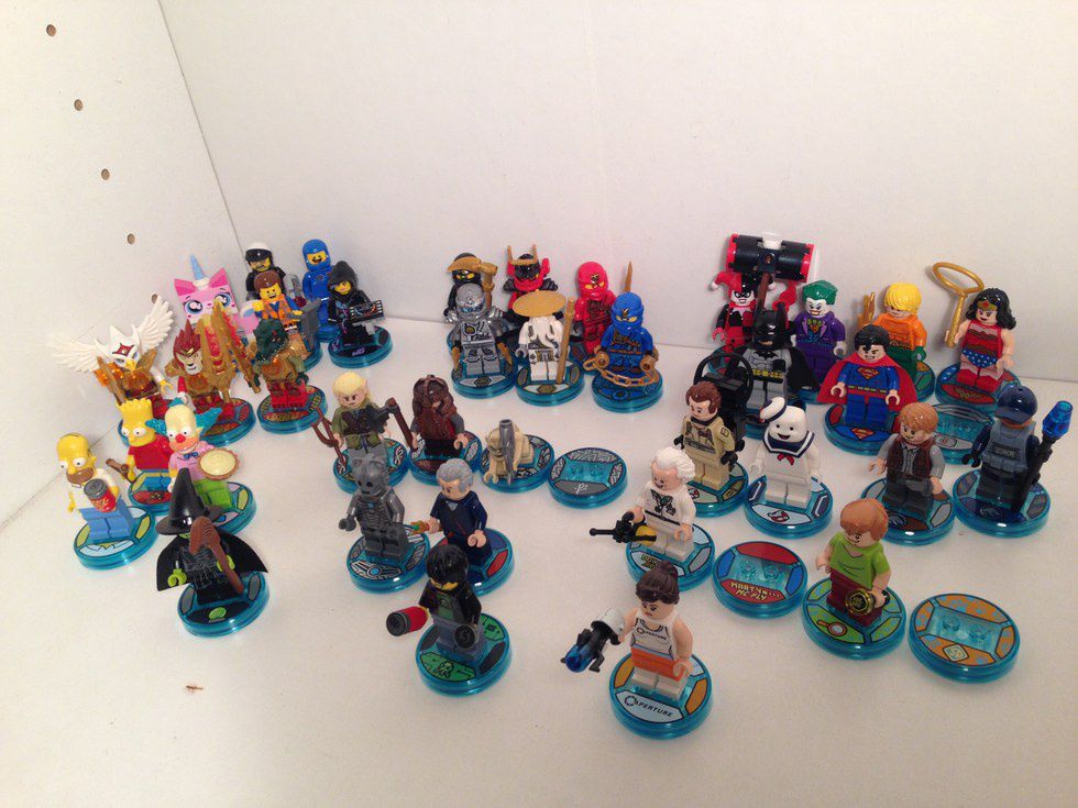 These are all of the playable mini-figures in LEGO Dimensions (some are removed from their bases; we'll talk about that later). Counting in gadgets, there's double the number of playable pieces in game, and it has no compatibility issues since this is the first version of LEGO Dimensions (with more figures like Bane and Slimer coming soon, as well as future versions).