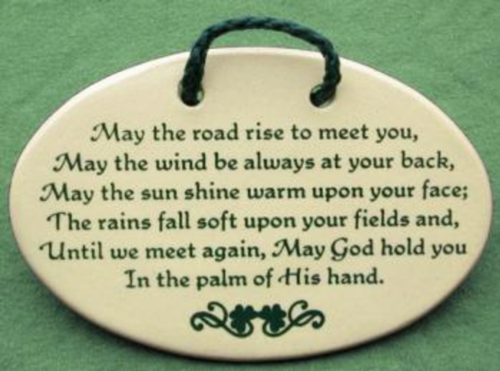 be always at your back, may the sun shine warm upon your face, the rains fall
