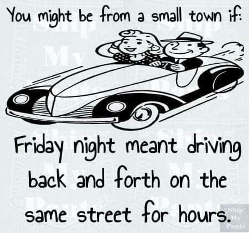 15. The majority of your time outside of school was spent cruising around town with your friends.