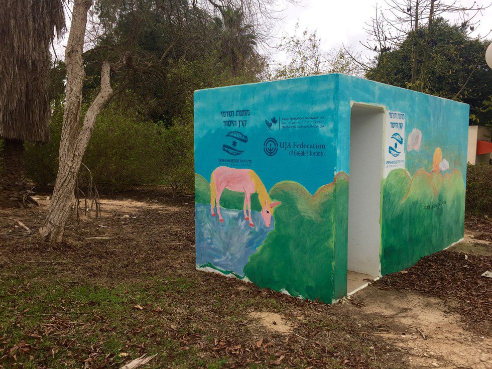 All of my expectations were quickly proven wrong one after the other as we drove past the vast fields of green farmlands, homes adorned with fruit trees and colorful flowers, and people walking with their kids and dogs. It was so quiet and peaceful there that I instantly forgot that just 800 meters away was a war zone. The only reminders of that reality were the thick-walled concrete shelters that stood every 50 meters or so throughout the kibbutz in case of any events that required shelter.
