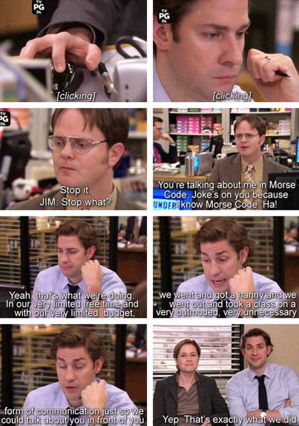 Right away, you start to become team Pam and Jim from the way they are always teaming up on pranking their coworkers, especially Dwight. It becomes the basis of their friendship and will make you mad every time Roy comes in the office and interrupts Pam and Jim's plan for the next prank. It's so cute how silly and childish they are together and it makes you just want to put office supplies in jello with someone you like.