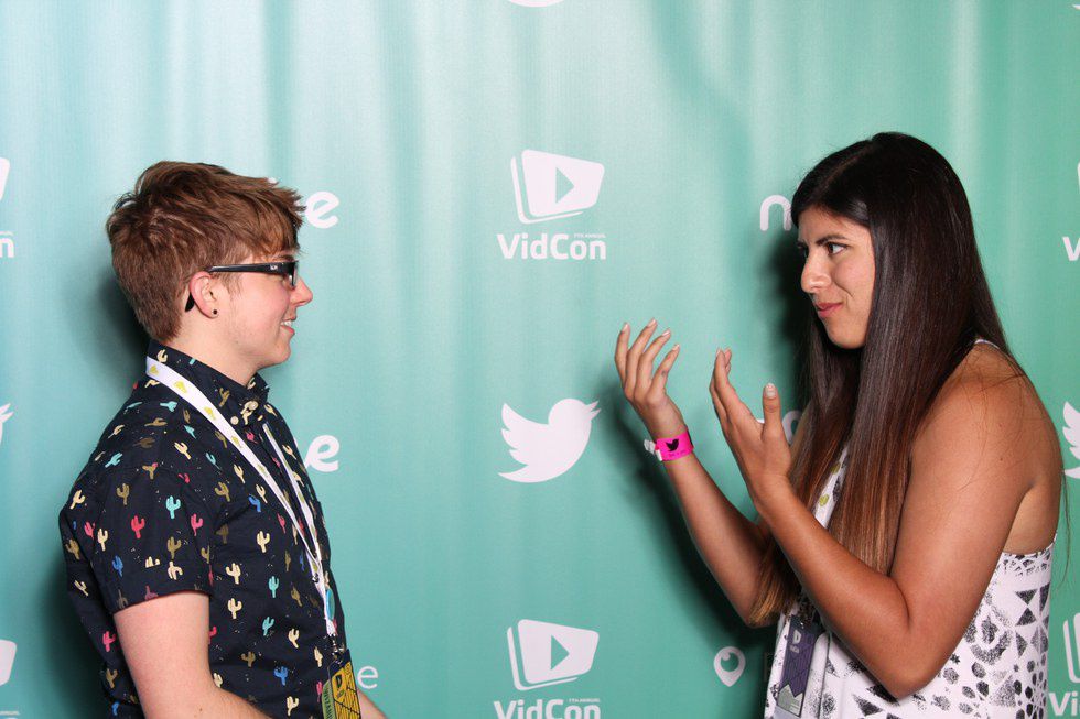 You cannot freak out. I don’t know how much I can stress this. If you’re meeting a big creator that is someone you look up to, you’re more likely to have a conversation with them if you’re not freaking out and scrambling just to get a picture. They are people, too.