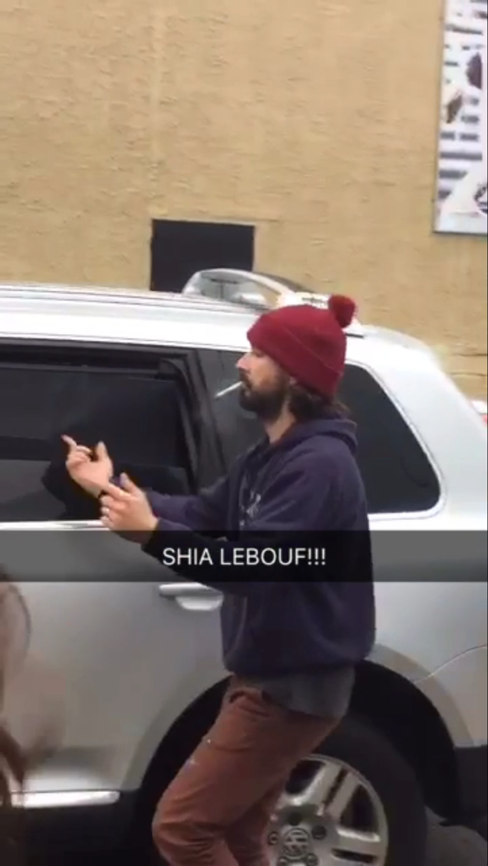 When we first got to the site, Shia was nowhere to be found. What we did see was a group of about twenty-five people chanting the phrase "He Will Not Divide Us" into a small camera that portrayed the event to viewers across the world. After about ten minutes or so, Shia finally made an appearance. Now you may remember Shia LaBeouf from when he played Louis Stevens from Even Stevens or Stanly Yelnats from Holes. Believe
