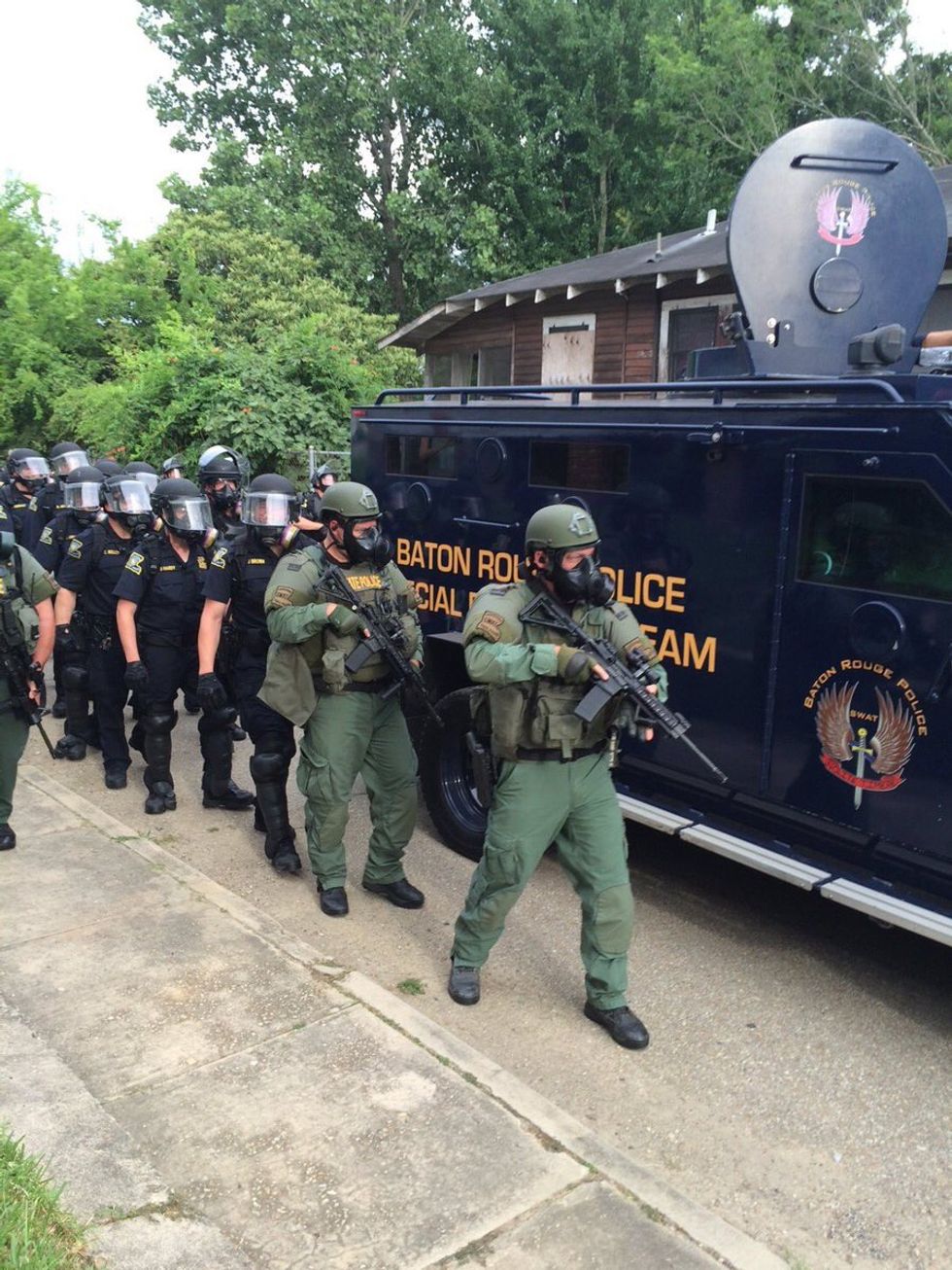 BRPD chief has defended the department’s militarization, claiming that it actually saved lives on the day Long attacked BRPD officers, but I wonder if that militarization wasn’t part of Long’s motivation. Had BRPD expressed remorse or regret or at least sadness regarding Sterling’s death, had BRPD acted as if black lives mattered when dealing with protesters in the days following Sterling’s death, had BRPD worked to acknowledge and de-escalate the anger of its citizens instead of going to war with them, would Long have still attacked?