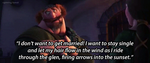 Merida taught me in this inspiring movie that you simply don't need a guy to be happy. Merida was so happy just doing her thing, shooting bow and arrows and riding her horse, but all that changed when her family tried to force her into marriage. This movie showed me that I can be happy and live my life to the fullest without a prince. When my prince comes, that will be great, but I am complete without one and for now I can stay married to myself.