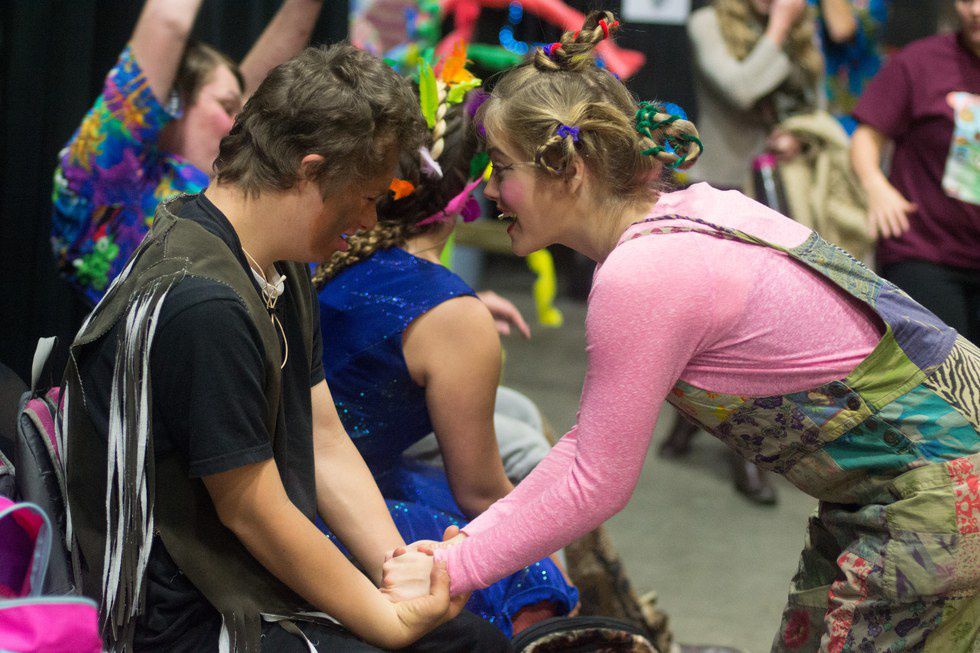 For those of you who don't know what the Penguin Project is, it's a program that brings together students with special need and their peers without special needs together. Each special needs student/artist is paired up with a mentor, a student without specials needs. The purpose of a mentor is to help guide and support their artist throughout the process of the project. The mentor is to memorize their artists lines, lyrics, choreography, and blocking.