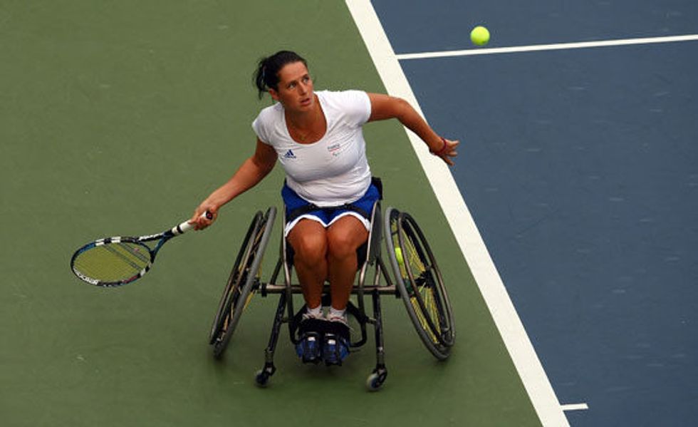 Disabled woman participating in a tennis match (source: www.womenssportsfoundation.org)