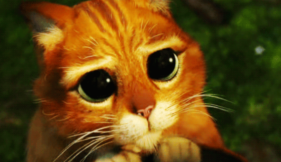 Remember that moment in Shrek? When Puss in Boots goes from being a fierce cat warrior to an adorable kitten?