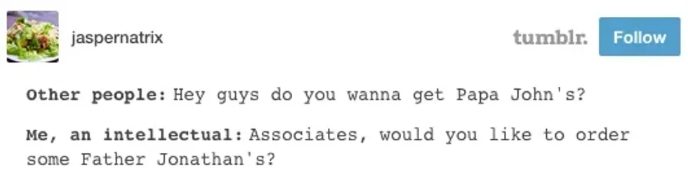 You like to listen to music, read books and magazines, chat with nearly anyone, and take short trips around the town. Obviously, this proves just how intellectual you are. Me, An Intellectual is a popular dialogue snowclone on Tumblr in which the character “me, an intellectual” uses needlessly formal language to correct well-known colloquial phrases (i.e. calling a “Slim Jim” a “Slender James”).6. Cancer