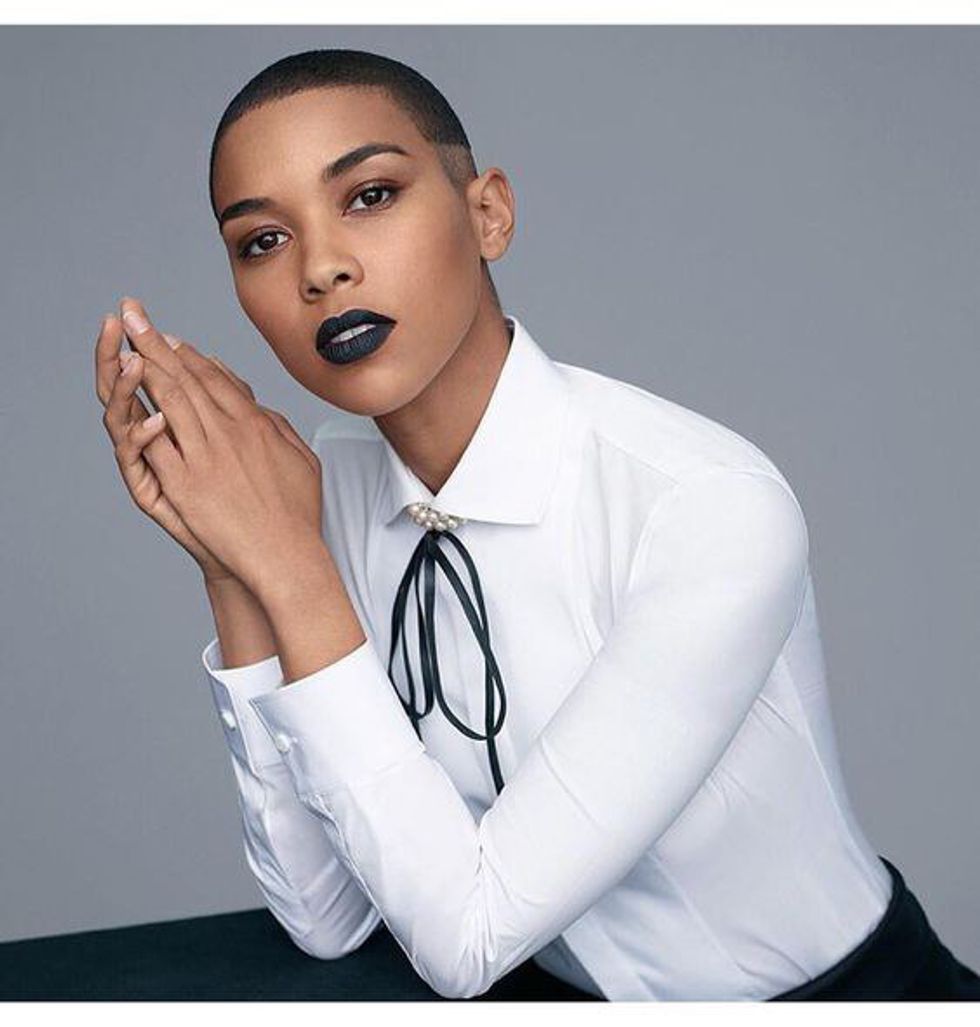 In the same way, a woman cannot and should not be considered butch simply because she has short hair. Instead, take a look at how she presents and carries herself altogether. Take, for example, Alexandra Shipp, an African-American actress who played Storm in the most recent Marvel movie, “X-Men: Apocalypse”. I watched a video of an interview with her the other day and realized she had a completely shaved head. Just look at her.
