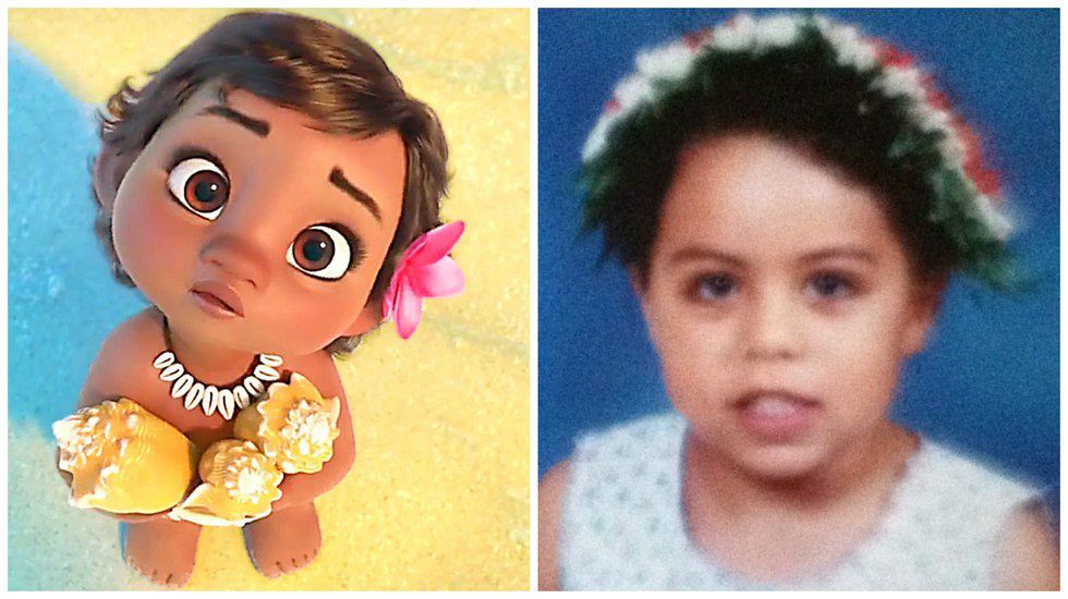 We both had the big brown eyes, dark curly hair, and my pre-school photo even has flowers in my hair for crying out loud. I wish I had Moana to idolize when I was a little girl. She also has the same thick, curly hair I grew up to have past puberty. If I had someone to look up to like her, to know that is what I would look like when I was her age, I might not have hated my hair or body as much as I did. She's proportional! Moana doesn't have the tiny waste and wide hips like the other idols.