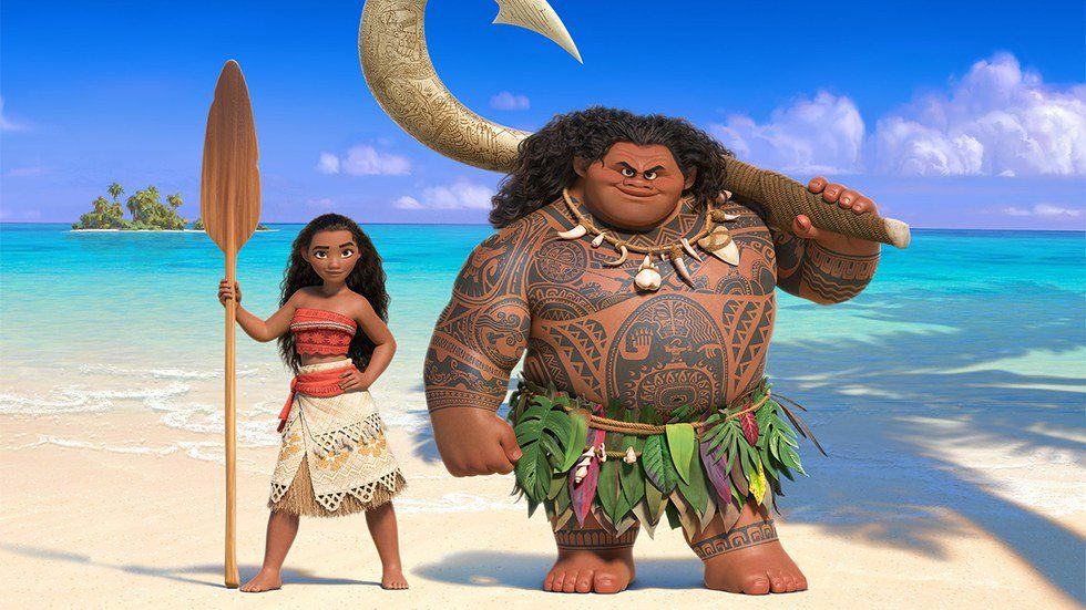 I mean seriously, the same hair. Even her nose is similar to mine. It's small, but a little wide at the bottom. But not only does Moana look like me, she's a fantastic role model. Without trying to spoil the movie for people who haven't seen it, I'll try to tell you what happens. Basically, Maui the demigod screws over the mortals and their island starts to die. The people never fish beyond the reef, but there aren't any fish left for them. The fruits they harvest aren't edible and the people are running out of options. Moana, who has a passion for adventure, discovers her ancestors used to be great sailors (just like mine!!!), and sets out to find Maui and reverse the curse. She learns how to sail by the stars just like her ancestors (and mine!!!) and as you can guess, she saves her island. And the best part? She does it without a boy! It was an incredible movie and it didn't need any romanticism. She also makes it clear that she is not a princess, but the daughter of the chief and is set to be the next chief. While she sometimes doubts herself, she remains strong and selfless.