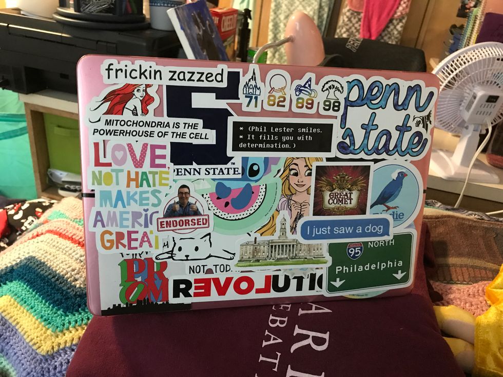 My laptop stickers mean a surprising amount to me. Since I got my first computer when I was 13, I had it totally covered in stickers that encompassed everything that I love from Harry Potter to Disney to politics and sleeping. Now that I officially have a laptop that doesn't shut down every 30 seconds (I had a Chromebook for six years), I decided to reward myself with my first ever RedBubble order.
