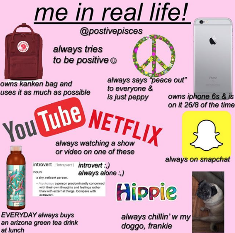 Alright, I know what you're thinking: what the heck is a niche meme? Well, you may not know the term, but if you have an Instagram, twitter, or Tumblr account, you have most definitely come across a niche meme. They are especially prominent on Instagram, having whole accounts dedicated to their existence. A niche meme is a very particular meme, usually highlighting a specific aspect of the creators' life or poking fun at something the creator has seen or noticed. They are often very obscure, and few people can relate to them. Niche memes use aesthetically pleasing elements such as clip art, well-coordinated color schemes, and large fonts to draw in viewers. So now that you know what a niche meme is, let's give you an example.