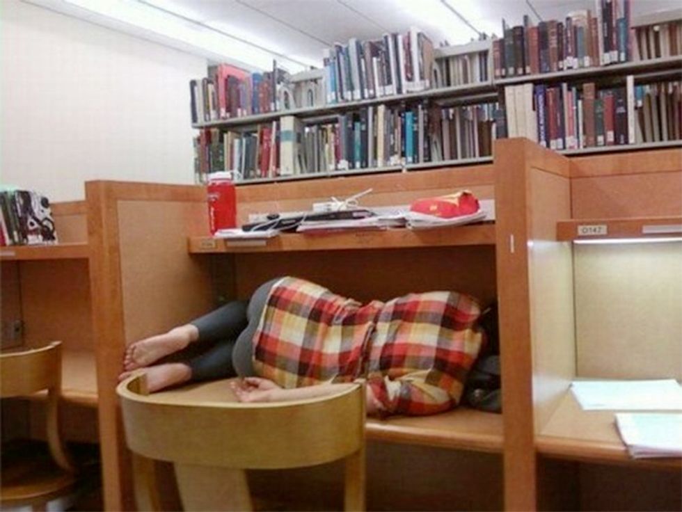 Hey, the library will be practically empty. I might as well take advantage of it and get some work done... or catch up on sleep I'll be missing in the week following break. I imagine anything will feel comfortable when it comes to the amount of time I'll need to do my assignments.