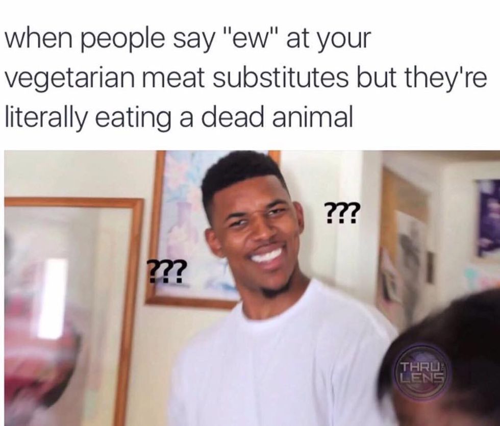 5. People think that your meat substitutes are gross and unnatural, as if their dinosaur shaped chicken nuggets aren't manufactured.