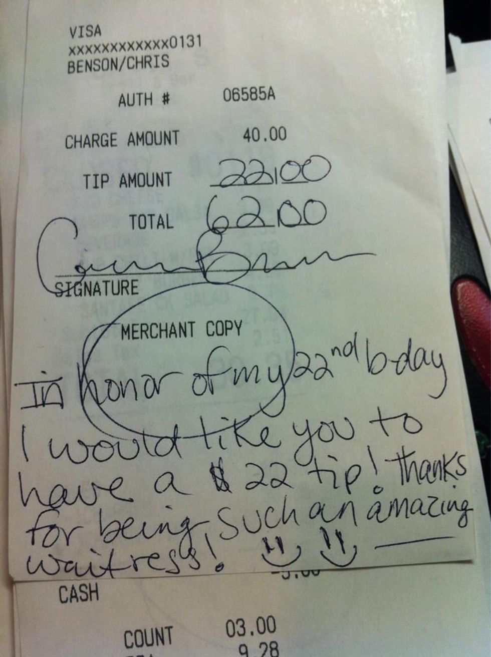 Even though we have a lot we wish we could say to your face, you are the reason we make money. Thank you for coming back, we want you to! We secretly want to kiss people on the forehead who are happy to be alive when they walk into the restaurant. Oh, you loved your service, me, the food and the atmosphere? Ah! Can I give you a hug? Sometimes all servers need is a compliment (not a verbal tip — a compliment) to help them get through their day. You easygoing customers rock our world.