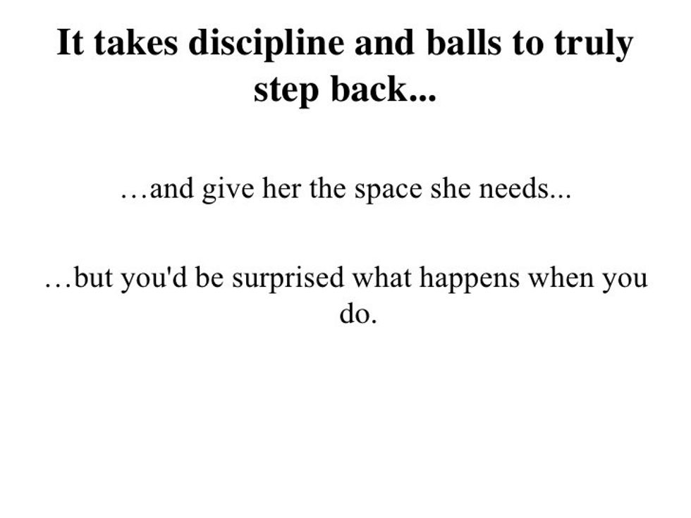 Moving forward to stage two of the relationship: I can do life with this person. Oh boy, this stage is the tester for sure. So you’ve been together for about six months or so now and you start looking at getting a place together. You find one, but you know you’re settling. Let me tell ya, settling is not the thing to do. However, settling now just shows you how you really feel when it comes to finding the house you want and it brings another side of you out that he probably hasn’t seen yet. Living with someone takes things to a whole different level. You learn things about that person that will make you happy, but things that also make you question what you’re even doing with them. This is also the stage where you see those “little things” fade away unless there’s strings attached. Now, guys, I know that not all of you follow this. There are some of you out there that are on top of your game. Back to what I was saying, don’t let life get so busy that you stop doing the little things. Help her around the house without being asked. Cook dinner. Take the animals out if you have pets. Don’t just come in and expect her to do everything while you watch TV. Especially don’t complain about her not spending time with you throughout the week if you do not help her. She’s going to want to see her friends and family on the weekends too. To her she’s there with you throughout the week and you have plenty of time to spend with her if you would help her. Take her on dates still. Keep doing the things you did to get her. Guys, I cannot stress what I am about to say enough. Pay ATTENTION to your girl. LISTEN to your girl even if you think what she does is stupid. Shooting down her dreams or hobbies will only change her into someone you do not know. She deals with the things you do even if it makes her crazy. As women we realize we can be difficult to understand at times, but we also know we put up with a lot more than you think. You would be lost without us. APPRECIATE her. When a girl feels unappreciated she will change. She’ll become someone you do not recognize. And sometimes your girl will just need her girls. Don’t sit there and give her a bunch of grief about going out without you. She still has a life outside of you and doesn’t need you up her rear 24/7. Give her SPACE! (sorry, for the wording in the below picture)