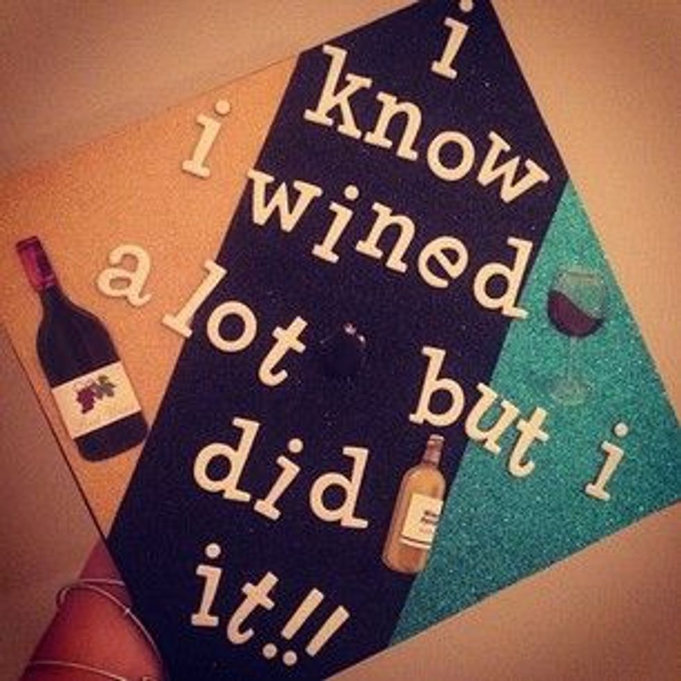 3. Something witty/a quote: Do something that reflects you as a person outside of your major and the organizations you were a part of. Even though you're an engineering major, that doesn't mean you can't love a good Hemmingway quote, especially if it's what got you through these last four years. Make sure your cap isn't focused on just the surface stuff that everyone already knows about you, but that it gets a little deeper.