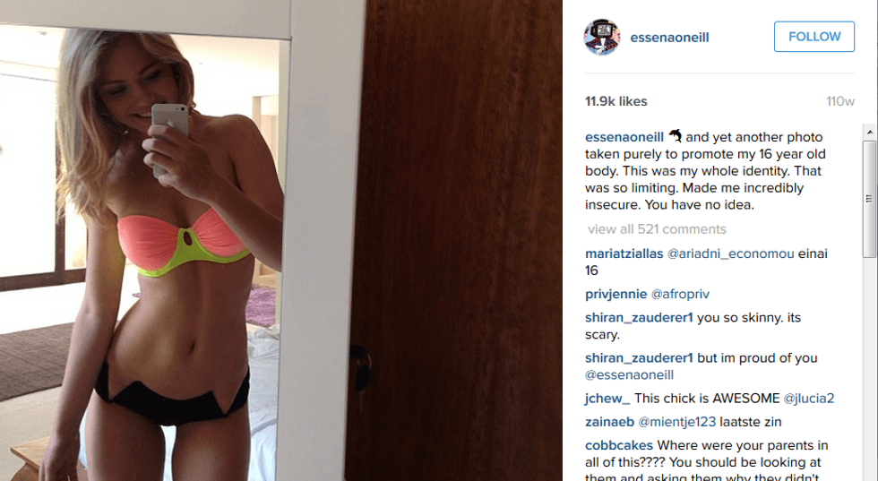 Before deleting her Instagram account, O'Neill had re-written her captions on many of her photos, explaining she was paid to promote clothing brands and drinks. She said how taking these photos took up a lot of time to come up with the "perfect" image.