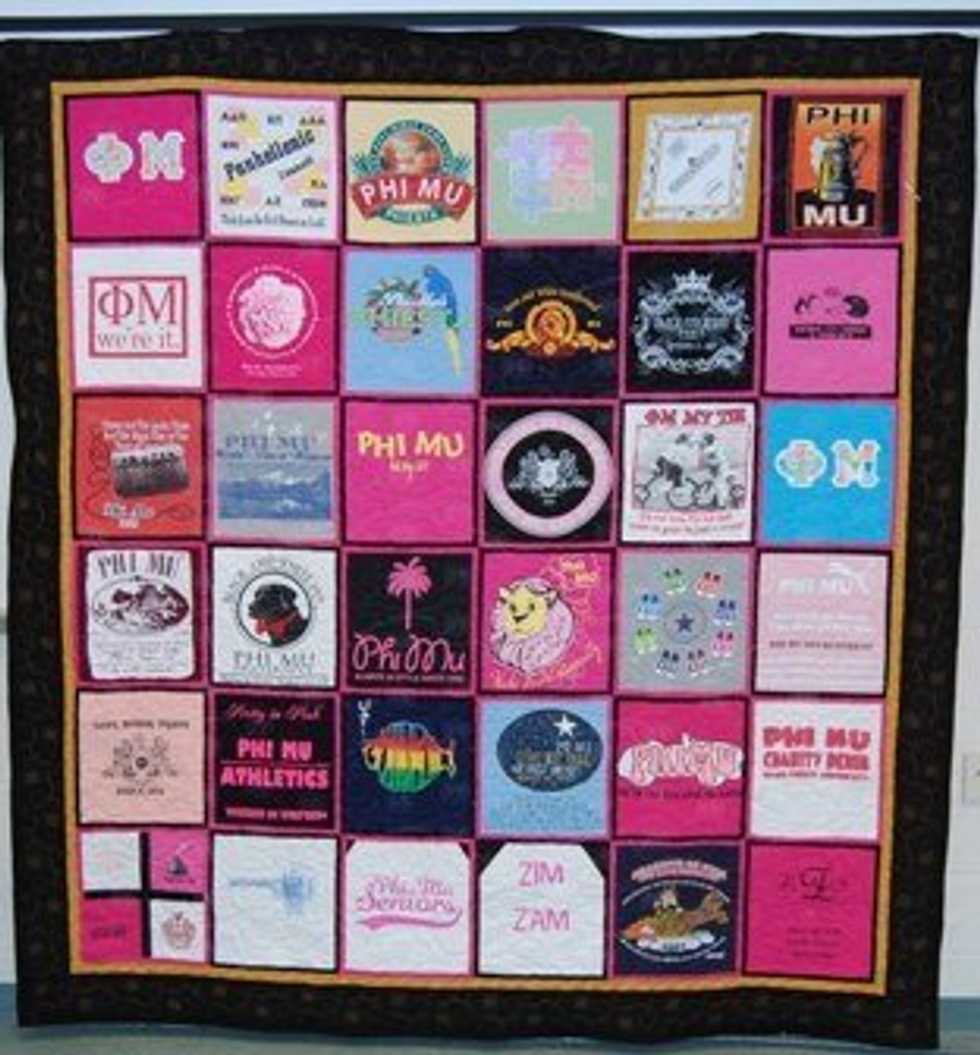 A cute, cozy blanket of your favorite sorority and fraternity t-shirts from your college years is the perfect memory to show your kids someday (or future legacy).