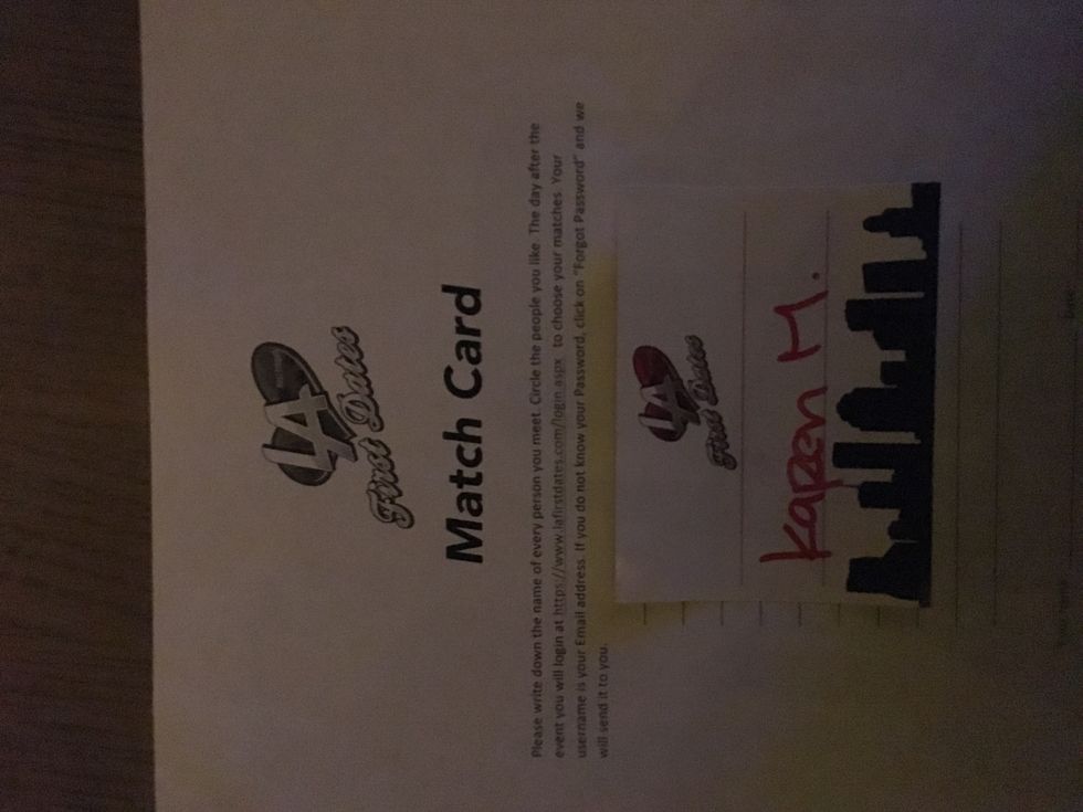 I’m a pretty punctual person and got to the event about an hour early. The event was at a hidden bar originally that you had to enter through an alley. I felt a bit uncomfortable but as I saw the other speed daters I felt more at ease. It was located in the heart of LA and luckily it was moved to the more visible bar very last minute. I felt more comfortable at this point because I met another girl there who never tried speed dating before, she wasn’t looking for anything serious and didn’t expect much from it. We decided to walk in and sit next to each other. As we entered the bar some of the servers asked why there were so many pretty girls and not so handsome guys. It made all the ladies giggle.